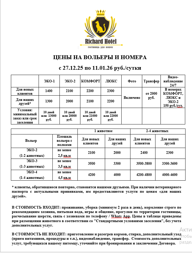 Открыто бронирование номеров и вольеров на Новогодние каникулы 2025-2026 и Рождество